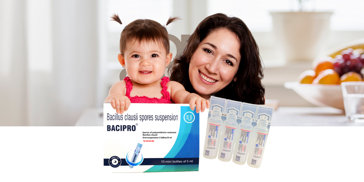 BACIPRO® is the probiotic of choice to address diarrhea in infants and children as it contains the well-researched, safe, and clinically documented strain of Bacillus clausii UBBC-07®.